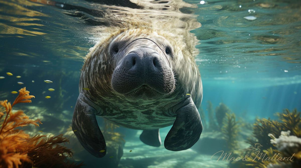 Manatees drift effortlessly through these calm coastal sanctuaries. They move without urgency, gliding through turquoise water with a quiet grace that seems to slow the world around them. Schools of fish weave through shafts of sunlight while coral gardens sway gently in the current.